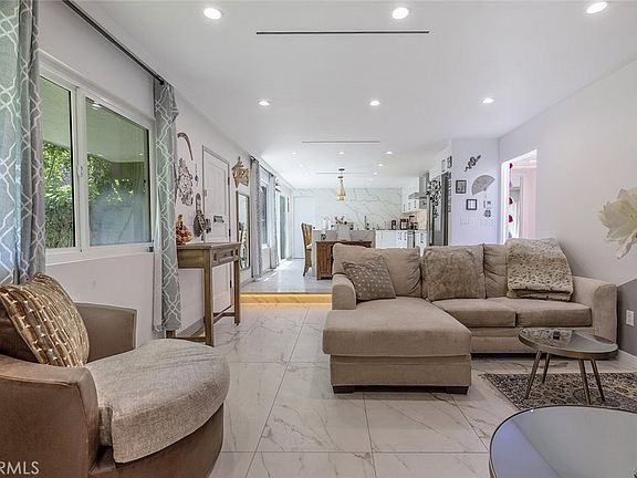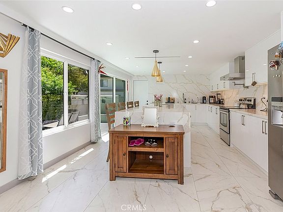Welcome to this fully remodeled luxury condo at 10426 Larwin Ave, Chatsworth, where high-end finishes and thoughtful upgrades create a refined living experience. The kitchen has been completely redesigned with elegant Calcutta marble countertops and backsplash, along with brand-new appliances including a 2024 refrigerator, wine cooler, island microwave, food warmer lights, and a built-in water filter. Marble stone flooring flows seamlessly throughout the home, enhanced by high-quality paint and finishes in every room. Recessed LED lighting adds a modern touch to entertainment areas and the exterior. The custom-built closet in the office offers functional storage, while the bathrooms feature an Italian bathtub, high-end bath tiles, custom shower and cabinets, and water-saving Japanese toilets. The living room showcases a wood accent design, and both the patio and garage flooring have been newly upgraded. The HVAC and venting systems have been updated for improved comfort, and the garage includes an EV charger outlet and additional cabinetry. For added security, ten cameras are installed throughout the property. This home offers a perfect blend of luxury, technology, and efficient design, making it move-in ready for modern living.