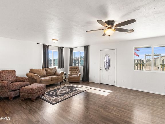 Nearly new, 5 year old built home, on a large corner lot. Many possibilities with this yard including workshop/sheds. Wood look laminate flooring throughout, NO CARPET!. The side patio offers a private area to unwind. Mounted TV in Primary Bedroom is included. Quite the home for the price, over 9000 square foot corner lot. Let's go!
