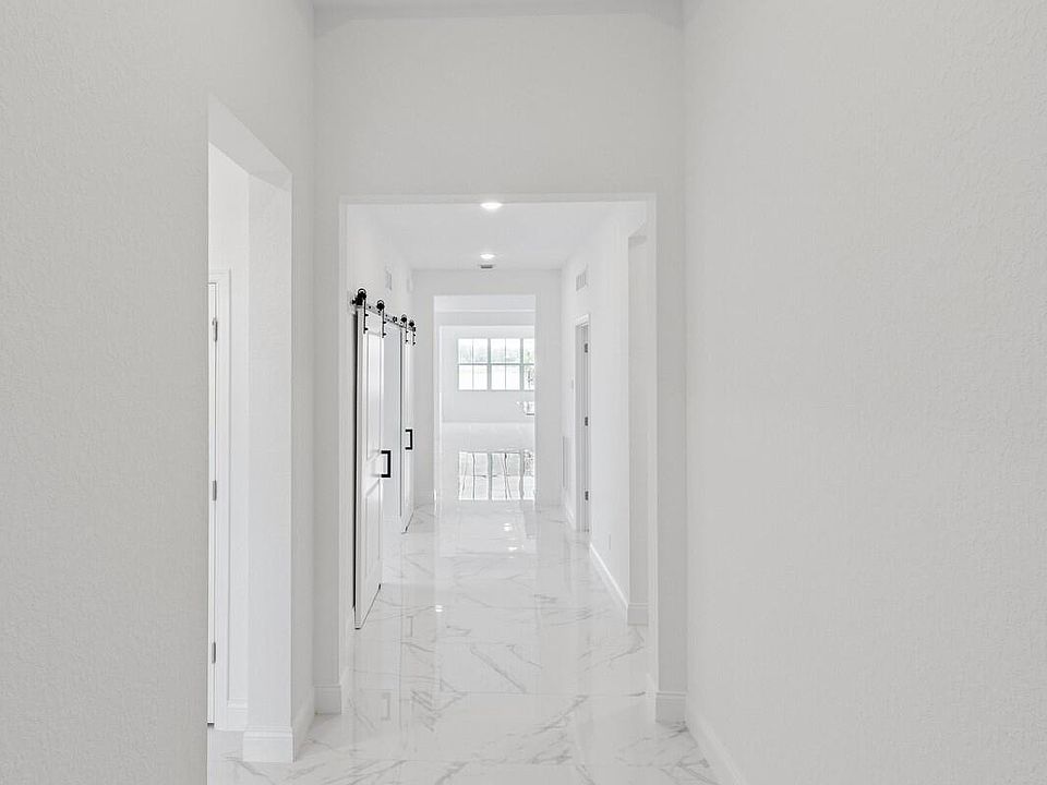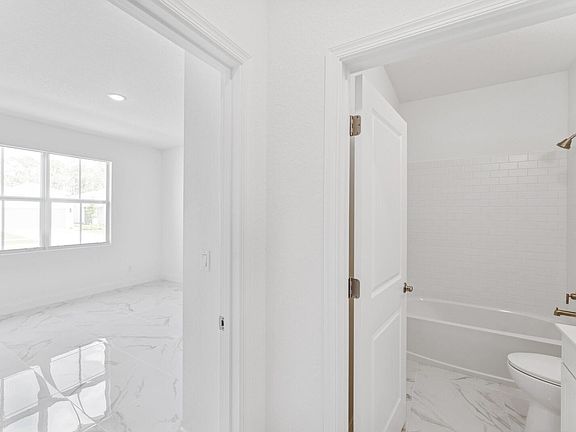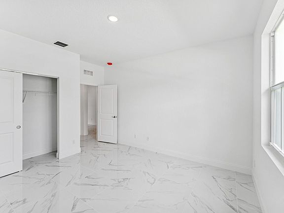 The luxurious primary suite is a true retreat, boasting triple windows for abundant natural light, a walk-in closet, and a spa-like bath with a frameless shower. Impact windows throughout provide added peace of mind, and the included Home Technology Suite keeps modern conveniences at your fingertips.