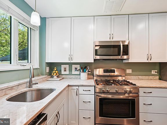 This one is perfection! Welcome home to this stunning two-bedroom unit in the sought-after Parkside community in Bethesda. This unit is one of a kind, everything has been done and it is truly move-in ready. Enter this unit and you are in a true foyer with a spacious closet, gleaming hardwood floors and views to both the living area and kitchen. The kitchen is a chef’s dream with white, soft-touch full size cabinetry, quartz countertops, upgraded stainless steel appliances, gas cooking, a generous pantry, plus the kitchen has been opened up to the dining and living areas. The large, open living and dining rooms have oversized thermal windows with tree views and is the perfect space for entertaining or relaxing. Down the hall is the private, primary bedroom with two closets, including one walk-in and windows on two sides. The second bedroom is spacious enough for guest space and an office area. The full bath has been classically renovated with white tile and fixtures. The linen closet is right outside the bathroom. The unit has extra storage one floor down in the secured storage room off the laundry room. This unit is a half flight up when you enter the building and the laundry and storage room are below you so no need for carpets. Plus, with no neighbors below you as it is very quiet. Ideally located within Parkside, the path to the Grosvenor Metro station is directly across from this building. The Parkside community is a hidden gem in Bethesda just minutes from Pike & Rose, Rock Creek Park is your backyard, downtown Bethesda, 495, and 270 all just minutes away. Parkside amenities include a large outdoor pool, tennis courts, a playground, on-site management, additional storage, ample parking, and so much more! Updates include thermal vinyl clad windows, new window blinds, new hardwood flooring, kitchen and bathrooms totally renovated, new closet doors throughout and new lighting throughout.