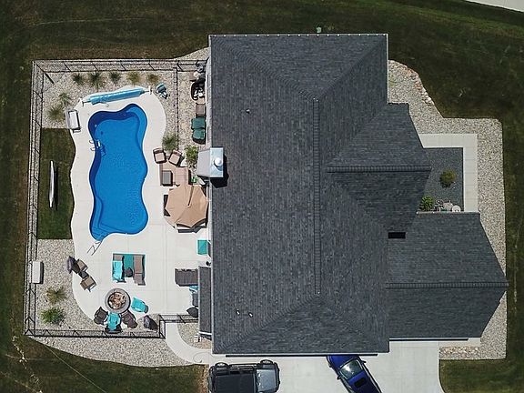 Large Two story great room, formal dining room, gourmet kitchen with granite counter tops and upgraded cabinets, stainless steel appliances, walk in pantry and butlers pantry with wine rack and glass display cabinets. Upgraded carpet and pad, large first floor laundry with upper and lower cabinets and laundry tub. Large master suite with tray ceiling, gorgeous master bath with granite counter top, jetted tub and spa shower with beautiful ceramic tile. Two bedrooms share a jack and Jill bath with ceramic tile. Fourth bedroom has on suite bathroom with ceramic tile. Loft area that over looks great room. Whole home central vacuum system, hardwood floors in entry, half bath and kitchen, natural fire place and 3 1/2 car attached side entry garage with man door. Large patio off kitchen with inground pool and fire pit. Sprinkler system.