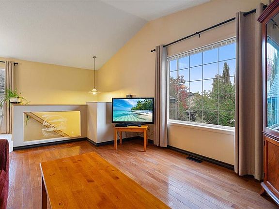 Open-concept livingLower levelAdditional living spaceCozy family roomMature crab apple treeSide deckStone pathway
