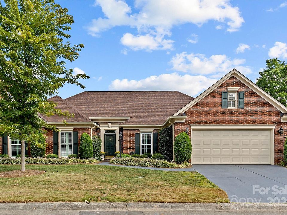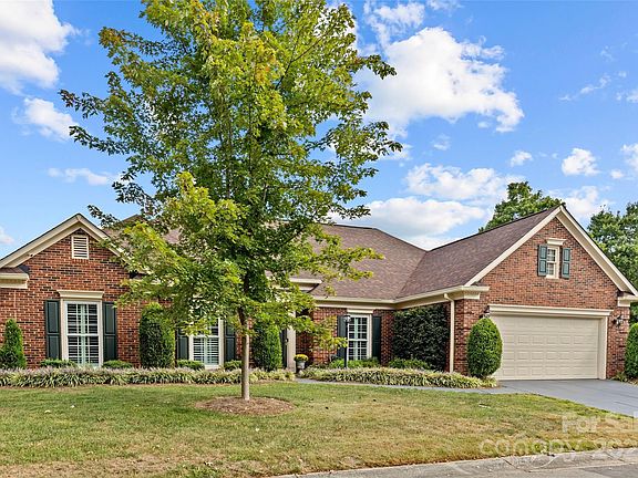 Experience luxurious living in this charming 4-bedroom, 2½-bathroom ranch-style home located in the beautiful gated Pullengreen community in Ballantyne. This home offers seamless accessibility with no steps for entry or exit. Enjoy the expansive outdoor spaces, which feature a large screened porch, a brick patio, a stunning fountain, and lush landscaping, all enclosed by a brick privacy wall on a serene interior lot. Inside, you'll find high, smooth ceilings, exquisite moldings, and elegant hardwood floors. The renovated kitchen is a chef's delight, showcasing white cabinetry, solid surface countertops, stainless steel appliances, and a stylish tile backsplash. It seamlessly opens to a cozy family room with a cathedral ceiling and a gas fireplace, perfect for gatherings.The home also includes a beautiful formal living room and dining room. The spacious primary suite is a retreat, featuring a renovated bath complete with an oversized tile shower, dual vanities, a garden tub, and a walk-in closet with abundant shelving. Additional bedrooms provide ample space for family or guests. HOA maintains front yard landscaping. Home has been meticulously maintained with new roof and skylights 2025, windows have all be replaced in 1019 and 2020, new stove and oven 2025, AC 2022, furnace in 2018 and evap. coil in 2011.