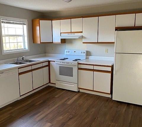 Large eat-in kitchen w/ plenty of cabinet space. Stove, dishwasher and refrigerator included. Hardwood floors throughout the unit with carpet in bedrooms. Washer/dryer hook-ups. Front porch and back deck - great for grilling. Open common yard area in back of unit Cozy 2 bedroom 1 1/2 bath in a quiet neighborhood conveniently located near grocery stores and shopping. New flooring is installed and great lighting. Check out our unit and make it your new home before Christmas! Utilities are tenant's responsibility.