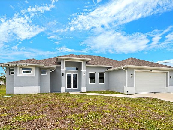Brand New 2024 Construction in Lehigh Acres! This 3?BR + DEN, 2?BA home features an open floor plan with gray tile, tray ceilings, and a bright great room. The modern kitchen boasts soft-close cabinets, granite countertops, stainless steel appliances, a decorative backsplash, and an oversized island. Enjoy two master suites with walk-in closets, dual sinks, and walk-in showers. Large windows and recessed lighting fill the home with natural light, while the open lanai overlooks a peaceful freshwater canal. Built with solid concrete block construction, the home includes a 2-car garage, well & septic, and a spacious lot perfect for a pool or garden. Move-in ready and conveniently located near schools, shopping, and main roads.