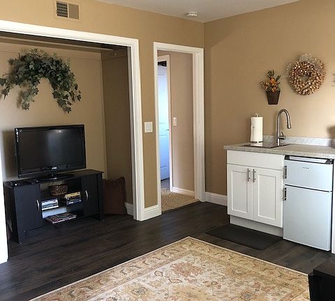 Fully furnished one bedroom, one full bath, kitchenette in living area. Private entrance, private patio. Very quiet day or night. New hard surface flooring in living area, carpeted bedroom, tile in bathroom. Fresh paint, new dishes, silverware, small appliances, etc. Great for one person! Walk to Old Town Orcutt, where you'll find wine tasting, small gift shops, bakeries, local restaurants, a library, gas station, hair salons, barber shops and more! About 12 miles to Vandenberg Space Station and approximately 7-8 miles to Marian Medical Center. Lots of shopping and dining out in Santa Maria, and not far from the Central Coast beaches of Pismo and Santa Barbara. (Note: listing shows incorrect info: not 3bdr, rental is 1.)