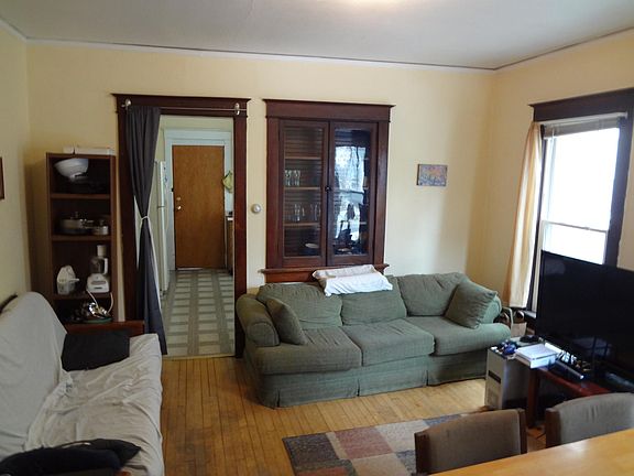 Approximately 950 sq. ft. Hardwood floors in living room, front hallway & large front bedroom. Carpet in the other two bedrooms. Tile floor in bathroom. Vinyl floor in kitchen. Newer windows. Built in china cabinet. Gas range. Front porch facing E Gorham St Street parking. Coin operated laundry in basement. Storage locker in basement. There is a small shared garden space. Four blocks from Tenney Park. Five blocks from James Madison Park. Located on a bus route. Owners managed & live next door NON SMOKERS ONLY please, The property is smoke free inside & outside NO DOGS Cats okay with an additional fee Landlord pays water bill. Tenant pays all other utilities, gas & electric. Security deposit is due at lease signing. NO DOGS, Cats okay $10 per month per cat fee. No parking available on property. Street parking only.