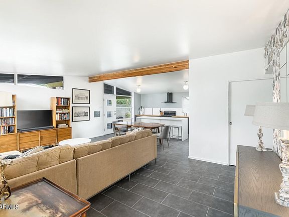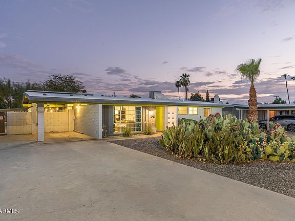 Rare opportunity to own highly sought after home originally designed by iconic mid-century modern architect Ralph Haver built in 1955. Original Haver features in great room-kitchen include floor to ceiling windows in living and dining space giving tons of natural light looking out to desert landscape and covered patio, exposed main support beams, vaulted ceilings, and low pitched roof line. Modern style renovated kitchen with butcher block counters and an island with quartz counters. Grey ceramic tile & textured carpet in bedrooms mix with bright white walls throughout to give this home a fun modern vibe. Bathrooms feature original mid century green and turquoise tile in great condition. Huge backyard with low maintenance landscaping is perfectly sized for any entertaining and gatherings! 5 min walk to the canal, Luci's at the Orchard or Dutch Bros! Energy efficient low cost electric bills thanks to a PRE-PAID Solar Lease (buyer has no monthly payments to Tesla/Solar City). Seller also has architectural plans for 425 sf guest house inspired by mid century modern Haver style available to share upon sale.