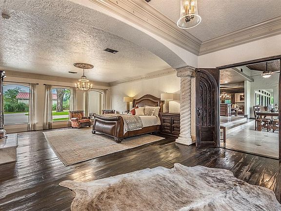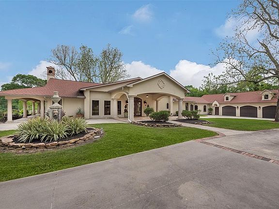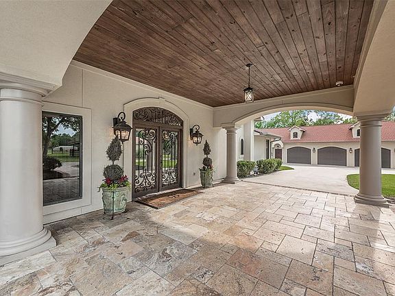 Set among 9 acres of stunning Texas landscape, this incredible country estate lends itself to entertaining of the highest caliber, featuring a gorgeous travertine covered patio with dining and lounge area, fireplace, outdoor kitchen, and saltwater pool. The custom home features a stucco façade, pine wood and travertine flooring, wine grotto, open concept living and dining area with exposed wood beams, limestone fireplace, and wall-to-wall windows, a wet bar, gourmet kitchen with Viking appliances and huge walk-in pantry, additional living area with a 2nd kitchen located off the family room, and climate controlled 3-car garage. The generous master suite includes a double-sided fireplace, custom walk-in closet, double vanities and travertine tub imported from Italy, and spa-like shower. The sprawling grounds of this beautiful countryside retreat are interspersed with towering trees and impressive 7000 sq. ft barn with tack room, horse stalls, and guesthouse on the 2nd floor.