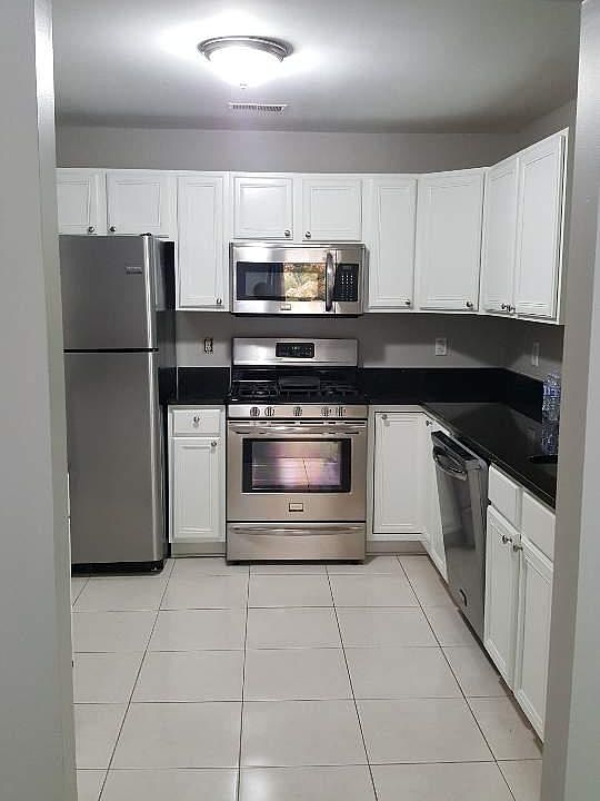 Large 2 bedroom / 2 bath, 2nd floor condo 1,100 sq ft, with parking, walk-in closets, balcony, outside storage closet on balcony, large living room with fireplace, separate dining area, lots of cabinets, granite counter-tops & butcher block sideboard island, stainless steel appliances, and gas cooking. Plenty of closet space. In unit washer/dryer. Disposal and ceiling fans. Water, sewer, trash removal, snow removal included in rent. New laminate flooring (no carpet in unit), bathroom vanities, paint, and more. Great location-minutes away from I-95 and commuter lot. Close to shopping; 2.3 miles to Potomac Mills, 3.3 miles to Stonebridge. Easy commute to Belvoir, better commute to Quantico!