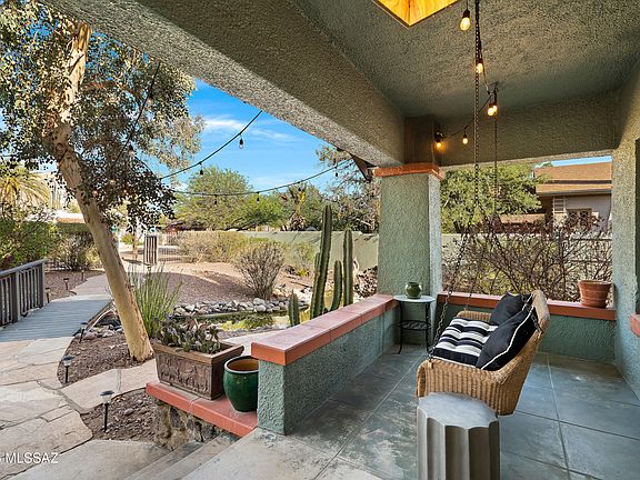 Historic Craftsman in University of Arizona District - Casita, Pool, Over 1/4 Acre!Beautifully updated Craftsman-style home in the University of Arizona Historic District on over a 1/4-acre lot. Main house features three bedrooms, two baths, original hardwood & tile floors, wood-burning brick fireplace, crown molding, bedroom barn door closets with wall safes, and a primary suite. Kitchen boasts oak cabinetry, granite counters, stainless steel appliances, and eat-in space.Period-appropriate updates throughout, including original leaded & stained-glass windows, updated baths with bidet toilets, modern tubs & walk-in showers, and newer roofs. Spacious basement includes laundry, mechanicals, and ample storage. Fully fenced property with gated entries, four-car parking, extensive landscape lighting, flagstone walkways, large pond with bridge & water feature, pergola-covered fire pit area, and built-in BBQ. Enjoy a sparkling lagoon-style pool with boulder waterfall and attached spa.