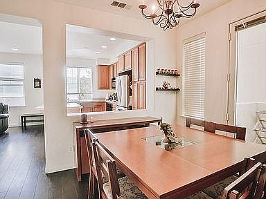 Beautiful contemporary pet friendly 2.5 story Single Family home with Swimming pool view and with attached 2 car garage in a gated community, comes with all the Furniture. 3 BR/2.5 BA + hobby room/ office with 1,772 sqft of living space built in 2006. This is a perfect home for the Savvy with Outdoor patio for entertainment or gardening. Appliances including Gas Oven/Range, Dishwasher, Refrigerator and Microwave. Rare East facing home with lots of bright sunshine & view to community swimming-pool. Loads of upgrades, Open Kitchen with Island, Quartz counter tops, all stainless steel appliances. Commercial-grade laminate floors, dual pane windows recess LED lights throughout Central Heating and Dual-Zone AC Separate Living and Family room Large Master bedroom suite w/ walk in closet dual vanity sink, tub and stall shower. Bonus room downstairs is a great place for an office or play room w/ large storage area under the stairs. Family-room has BOSE Home theater system installed with concealed wiring, ideal for a Movie night Community offers Pool Spa, Clubhouse and walking trails and Optional Gigabit internet service. Wooden flooring on all the levels. Washer and Dryer included. Near to Cisco, Samsung and close to Highway 237, Highway 880, Highway 680, and the Great Mall. 1 Year Lease. Deposit of 1-2 months rent depending on credit approval. Nearby parks: Tom Evatt Park, O'Toole Elms Park, and Starlite Park. Walkable distance to many day-care/pre-school facilities. Near by stores/places: Grocery stores - 0.5 miles (Walkable) Indian/Chinese restaurants - 0.5 miles Newly opened Trader Joe's - 1 mile Great Mall - 1.2 miles Elementary school - 1.4 miles BART station - 2 miles Bus lines: 66 North Milpitas - Kaiser San Jose - 0.3 mile 217 Mission San Jose Milpitas - 0.4 mile 47 Milpitas BART - McCarthy Ranch via Park Victoria - 0.5 mile 44 Milpitas BART - McCarthy Ranch via Tasman & Alder - 0.5 mile Rail lines: Orange Line Mountain View - Alum Rock - 0.6 mile Tenant is responsible only for Rent and utilities. HOA is included in the rent. No smoking please. Pets are not allowed.