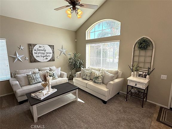 BIG PRICE REDUCTION! Sellers are MOTIVATED! Welcome to your dream retreat in the heart of San Jacinto! This beautifully maintained 4-bed, 3-bath cul-de-sac home with SOLAR plus a whole house fan is truly move-in ready and full of thoughtful details that set it apart from the rest! From the moment you arrive, you’ll notice it's undeniable curb appeal. Step inside and be greeted by a spacious, light-filled living and dining area. A warm and inviting family room, centered around a charming fireplace with sliding glass doors that open to reveal a truly special backyard oasis: fully landscaped, complete with a covered patio, a stylish gazebo area, and breathtaking views of the San Jacinto Mountain Foothills. Whether you're sipping your morning beverage or enjoying an evening by the fire, this space is designed for both relaxation and connection. Downstairs, a private bedroom and full bath with a walk-in shower offer the perfect setup for visiting guests, multi-generational living, or a home office. Upstairs, the serene primary suite offers a calming escape with its own ensuite bath, while two additional generously sized bedrooms and another full bathroom provide room for everyone. Love to entertain? The expansive backyard offers more than enough space for gatherings — and even the possibility of adding a pool while still having room to play. The dedicated, double-wide fully fenced RV area means you can keep your travel trailer or boat close at hand without sacrificing curb appeal — perfect for your weekend toys and future adventures. Custom tilework and upgraded flooring throughout the kitchen and bathrooms add a touch of elegance, while no HOA and low taxes make this home truly affordable. If you're searching for a home that offers both comfort and possibility — this one checks all the boxes. Welcome home.