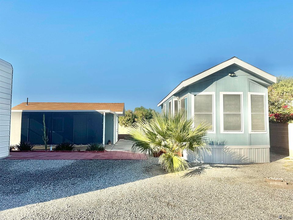 Super clean and well-maintained property, 2018 Park Model. Casita and RV Carport. Main home is a 396 sq ft Park Model in excellent condition with an additional 350 sq ft Casita, with a 3/4 bathroom, full size washer and dryer and a queen size Murphy bed. Partial furnished with couch, rocking chairs ,end tables, dresser, TVs Outdoor features include Pavers around both structures and in the back area, landscaping, screened patio, and a fully fenced and gated lot. Two RV hookups with clean-outs, a large RV pad, and a 12' x 31' RV carport provide excellent rental or storage options. Ideal for investors or multi-unit use. Clean, organized, and ready for occupancy.