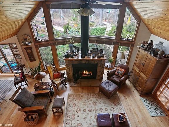 So close to the lake; just steps to private Gowdy Shores Beach. Well-maintained home in a park-like setting with room for a pool. 2 bedrooms, 2.5 baths, lower level rec room/office could be 3rd bedroom. Wood floors, pine-covered cathedral ceilings, fireplace, decks, screen porch, open first floor plan with windows overlooking gardens. Major remodel in 2001.