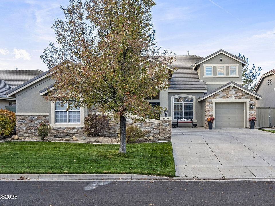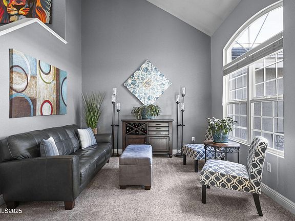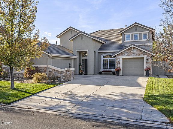 Welcome home to 10431 Silver Rush Ct—a beautifully kept 4-bedroom, 2.5-bath residence tucked into the friendly, convenient neighborhood of Double Diamond in south Reno. This home is truly move-in ready, with a thoughtful string of updates that let you skip the major renovation stress and start enjoying life right away. Walk in and you'll be greeted by an open, airy floor plan under soaring ceilings. The living areas shine thanks to fresh paint and new flooring (ceramic tile in the foyer, kitchen, bath and laundry rooms,with carpet in the living, dining, family and bedrooms) so the aesthetic feels modern yet comfortable. The heart of the home is the upgraded kitchen and adjacent breakfast nook—ideal for morning coffee, casual meals with family, or entertaining friends. Flow from the kitchen into the generous family room, then out through sliding doors to a backyard oasis sized just right: low maintenance, landscaped, ready for summer evenings or a quiet spot for your dog to roam. Upstairs, you'll find the primary suite with a walk-in closet and a spa-inspired soaking tub that invites you to unwind after a busy day. The additional bedrooms are well-sized (great for kids, guests or a dedicated home office) and the loft/game-room space is offered furnished with the pool table and came room necessities like a vintage slot machine! Beyond the walls of the home, Double Diamond offers the best of both worlds: a peaceful, suburban vibe with mature landscaping, accessible walking paths and quiet streets, yet just minutes from shopping, dining and access to major roads.