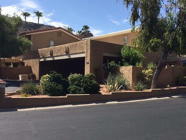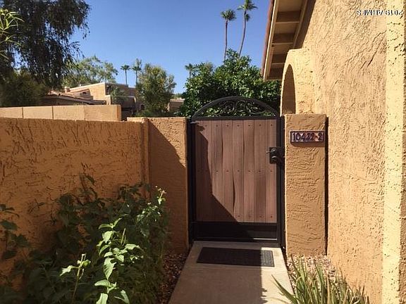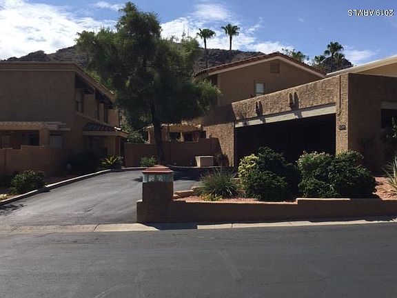 MUST SEE Southwest-style in the Pointe Tapatio community. Home was recently remodeled with newly expanded kitchen, appliances, cabinetry. Marble countertops, Saltillo tile and baseboards throughout the home. Dual -pane windows/doors reduce noise & energy control. The balcony is one of the largest in the community with a view of North Mountain, 2nd bedroom has Murphy-Bed with shelving. This home is graced with a tier large courtyard with accent rock, gas fire-pit, established grapefruit tree and native plants, with an area for you to create your own garden, shares a partial covered patio to enjoy morning coffee, wind down after work, entertain friends or just enjoy all that the Arizona Desert shares. Gated access to animal park behind courtyard.