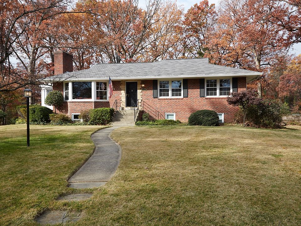 Wonderful brick rambler on gorgeous 1/2+ acre wooded lot with mature trees. Home has 4 beds, 3 full baths, 2 fp, large garage, family room + sunroom/office and a large deck, beautiful hardwood floors and so much more! Walk to FDA.