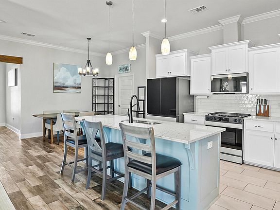 Take advantage of the recent price reduction on this stylishly upgraded 4-bedroom, 2-bath home offering 1,684 square feet of modern living space. Designed with comfort and functionality in mind, the open-concept layout is perfect for everyday family life as well as entertaining guests. Step outside to enjoy peaceful pond views from the backyard, a serene setting ideal for relaxing, fishing, or simply appreciating nature. This home features numerous thoughtful updates, including new ceramic tile in the primary suite, fresh carpet in all bedrooms, and modern ceiling fans throughout. The garage floor is epoxy-coated with decorative flakes, while the interior walls have been freshly textured and painted for a clean, inviting atmosphere. Additional upgrades include: power backup readiness with a 50-amp generator plug and transfer switch, renovated bathrooms with sleek fixtures and skirted toilets, upgraded outlets and switches with screwless faceplates, new door hardware, an ultra-quiet garage door opener, a new gas range and microwave to match the refrigerator, and additional blown-in insulation in the attic. Bonus items included with the home: The seller is including a push-button generator that powers the entire home when connected to the exterior plug, a Samsung Bespoke refrigerator with extra panels, a nearly new GE washer and dryer, and a dining table with chairs. This move-in-ready home perfectly combines upscale finishes with a peaceful outdoor vibe. Don’t miss your chance—schedule a tour today!