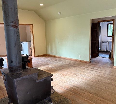Renters responsible for electric, internet and trash. No smoking indoors. Outside pets negotiable. Last month's rent included in deposit. No central heating but a wood stove that keeps the house nice and warm.