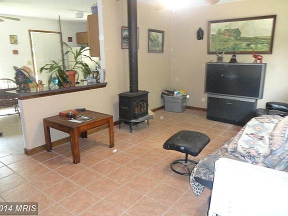 Cozy home on 10 private wooded acres. Home features ceramic tile floors throughout, wood stove in living room, spacious bedrooms, extra tall over-sized 2 car garage. Large shed in the backyard and a circular driveway. Deck on the front of the home and room to run in the yard.