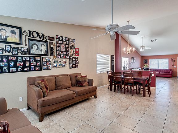 Hurry to see this beautiful 4 bed, 2 bath home with stone accents on the facade! Gorgeous interior with vaulted ceilings for more overall room volume, designer paint finishes, and spacious family room. Perfect sized kitchen offers matching appliances, pantry, track lighting, and cabinet/counter space. Split master bedroom has his & her closets and a lovely bath with track lighting in vanity. Grassy backyard just for spreading out and relax in the covered patio while enjoying your favorite beverage. Don't miss this opportunity! Set up an appointment before it is gone!