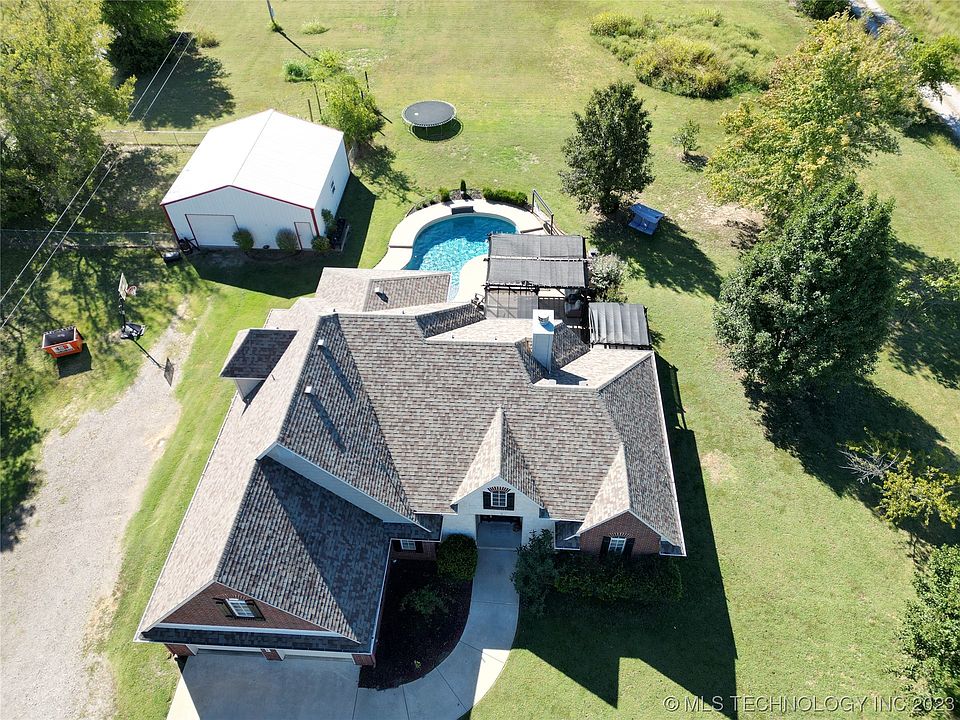 Bring the farm animals. 1 Owner, custom built 4 BR 2.5 BA. Oologah School Dist. Only 3 miles to Claremore and 5 miles to Oologah Lake. Country living w/City amenities. New Roof in 2022. New dishwasher 2023. Inground Saltwater Gunite Pool, Re-plastered 2023. Outdoor Kitchen/Fireplace, Hot Tub, Built-In Grill and Mini Fridge. Pipe Rail Fence along the front of property. 30x30 insulated shop with electric. Fenced area for the dogs.