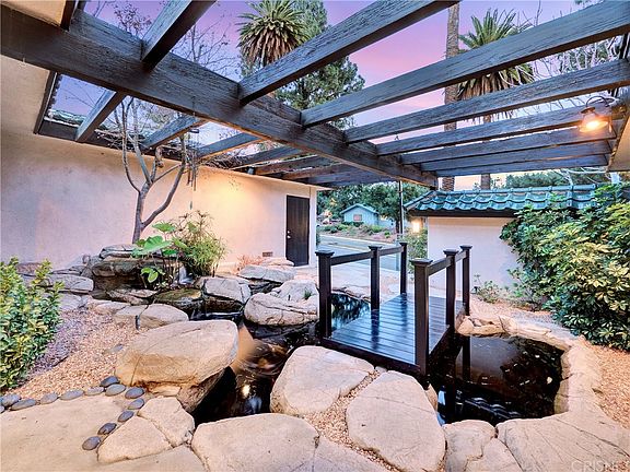 Come see this beautiful, modern, Zen, & tranquil home located on a quiet tree-lined street. You will be welcomed by a circular driveway w/ double automatic gates & a small bridge that leads you over the peaceful koi pond before you enter this turnkey home. The foyer is highlighted by a large skylight allowing plenty of natural light to flood the entry. This home boasts a recently updated chef's kitchen w/ all stainless-steel Viking appliances, Caesar countertops, custom backsplash, & plenty of counter space, cabinets & storage that flow seamlessly into the spacious family room. The formal dining room leads you to the light & bright living room w/ plenty of windows & a wonderfully designed floor to ceiling fireplace. You'll find 4 generously sized bedrooms, with 3 having en-suite full baths, w/ top of line finishes & fixtures. The master bath has a separate shower & soaking tub. This home also features a unique clay roof, recessed lighting, ceramic tile flooring, & 2 distinct cement columns for a nice added touch. All bedrooms, living, & family rooms have access to the vast, but very private yard that is meticulously landscaped w/ palm trees, & other mature & fruit trees. One side of the yard hosts a perfectly shaded sitting area, while the backyard boasts the sparkling saltwater pebble tec pool. This home is convenient to freeways, highly acclaimed schools, restaurants, & shops. This immaculate home is truly perfect, not just for entertaining, but for any buyer to call home.