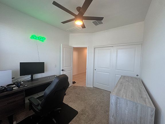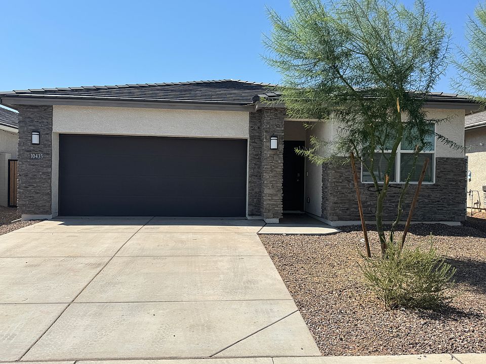 Modern home recently built in Tolleson for rent. Great views of the Estrella mountains from entire community! Home is on a Cul de sac street with minimal traffic. 3 bed/2 bath/split plan with large Primary bedroom. It has a spacious 3 CAR Tandem garage for storage, toys or seasonal decor. White cabinets, granite counters and extended tile throughout (carpet in bedrooms only). Home comes with modern appliances including washer/dryer. Low maintenance yard, with covered patio.