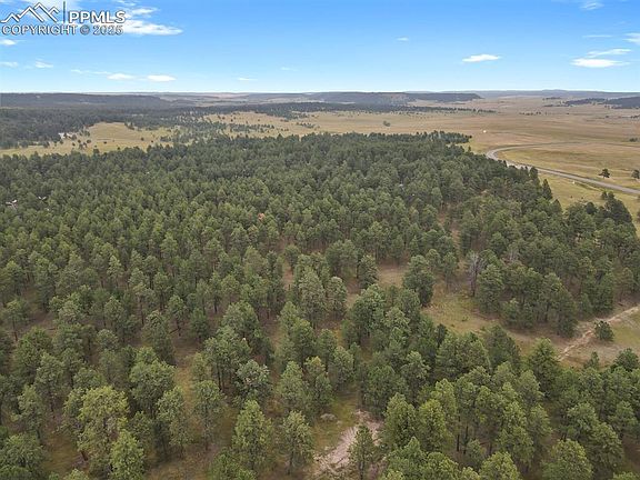 Elevated 5-acre lot with stunning Pikes Peak and Front Range views, walkout potential, and direct trail access in the final phase of a master-planned community. Animal-friendly (2 horses, 4 alpaca, 6 poultry, 4-H cattle/sheep/goats allowed) with rolling terrain, ponderosa pines, and a peaceful rural feel just minutes to Colorado Springs and Denver. Domestic well permits into the Dawson Aquifer (homeowner responsibility), accessory dwellings up to 1,000 sq ft, and auxiliary buildings up to 2,000 sq ft allowed. Dark-sky initiative preserves starry nights; covenants are protective but not restrictive. Option to purchase the adjacent parcel for up to 10 acres of prime Colorado living.