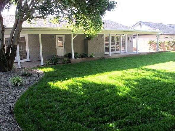 Just updated and redone charming 3 Bedroom + Den + 2 bath home in lovely area of Granada Hills. New landscaping front and rear, new vinyl faux wood plank flooring throughout, and French doors in living room and primary bedroom leading to stunning big backyard. Huge wood patio cover the entire width of the house for backyard fun and entertaining. Beautifully updated bathrooms. Kitchen with charcoal gray cabinets and newer stainless appliances. Front of house will have all new windows. Close to 3 great schools including Granada Hills Charter High School. Near lots of shopping. Good credit a must! Prefer 2 year lease. Owner pays for water (not sewer charge). Weekly gardener included. No smoking on premises. Prefer 2 year lease term. Tenant must obtain Renter's insurance policy. Good credit a must. Documentation to prove income will be required. Each prospective applicant over 18 must fill out application and pay $30 fee for credit report. Copy of Driver's License required. Owner has a Calif. Real Estate license.