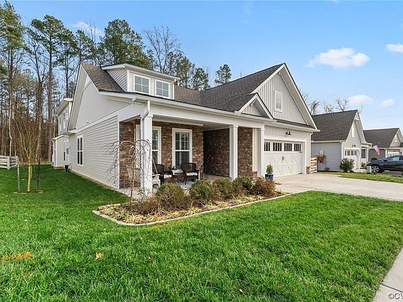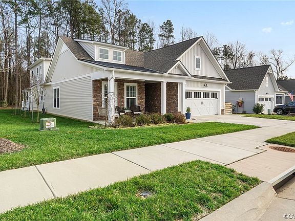 Welcome to 10437 Woodside Meadow Terr! This beautifully taken care of cottage/farmhouse home is located in the highly sought after 55+ Chickahominy Falls community. Beautiful one-story living with additional bedroom/bath upstairs. Primary bedroom has two large walk-in closets, large master bath w/free-standing tub, and additional living space with view of the back deck and woods. New deck built in 2021 off screened in back porch. This home is situated right off of I-95 so you can get to Ashland & Downtown Richmond in 15 minutes.