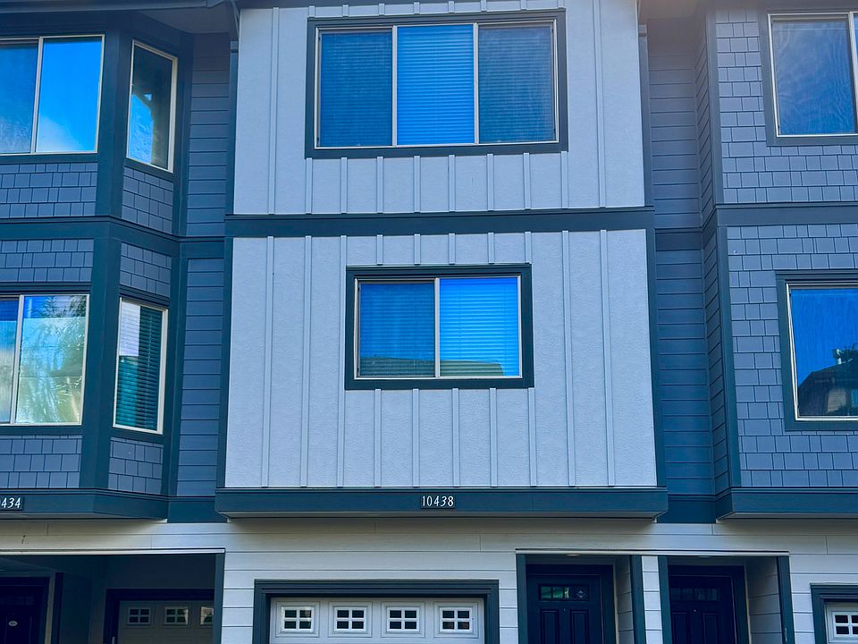 As you enter the home, there is garage access on the left, a full guest bedroom on the this level. Main level features cozy living room with a gas fireplace and access to a balcony, kitchen equipped with stainless steel appliances and an eating bar. On the upper level you will find a guest bedroom with an ensuite bathroom, and the primary bedroom with an en suite bathroom and balcony access. This home comes complete with washer/dryer available for tenant use, an attached garage and a low maintenance back yard!