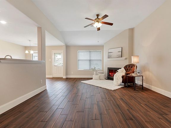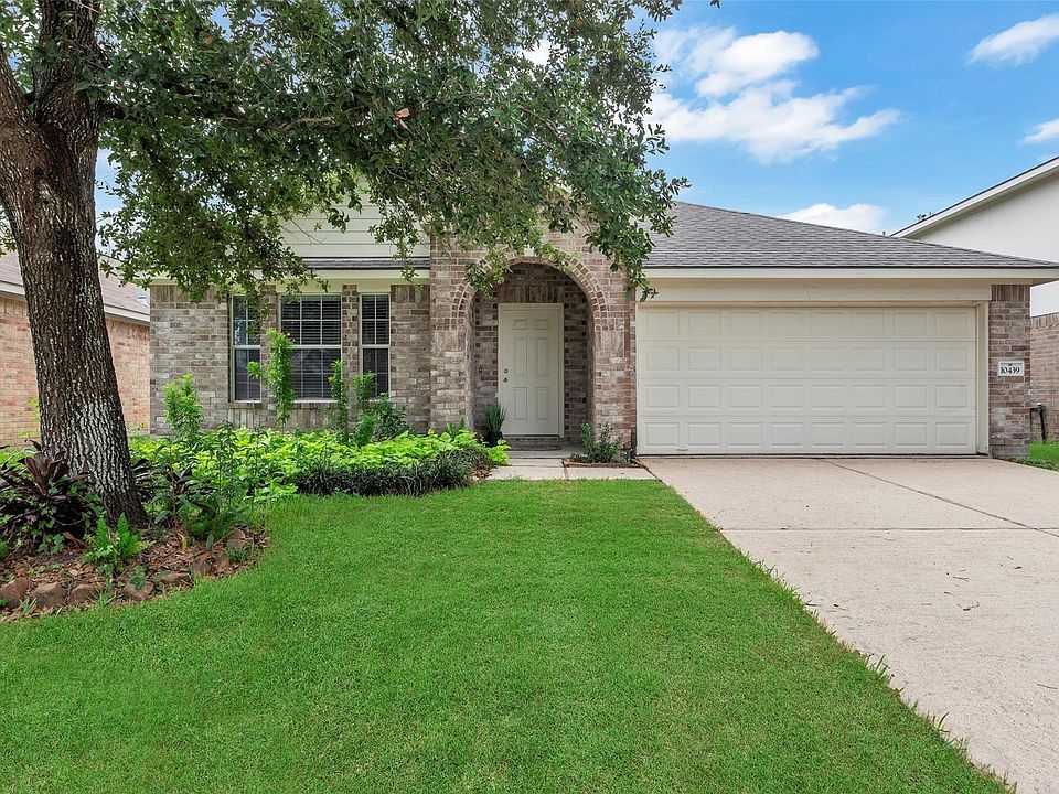 Welcome home to this beautifully maintained single-story brick house offering 3 spacious bedrooms and 2 full baths in the peaceful Grants Trace community. You'll love the open-concept layout, wood-look tile flooring, and neutral color scheme that complements any style. The kitchen flows into the living and dining areas, perfect for relaxing or entertaining. The primary suite features a soaking tub, separate shower, dual sinks, and a roomy walk-in closet. Enjoy a private fenced backyard with lush greenery and seasonal flowers. Conveniently located near Hwy 249 for quick access to shopping, dining, and major employers. Available now don't miss this beautiful home!