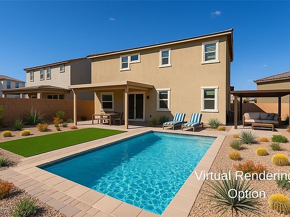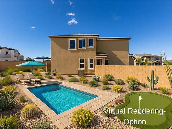 We like big lots and cannot lie! All excited buyers cannot deny- the room and space are all over the place! This 4-bedroom + loft home is a standout, perfectly situated at the back of the cul-de-sac in a gated community. Featuring one of the largest yards in the entire neighborhood, it’s ready for all your backyard dreams. Pool? Play structure? Outdoor kitchen? Fire pit? Putting green? Pickleball court? This lot is that BIG. Some photos have been enhanced to show possible options. Interior highlights: a bedroom on the first floor, designer window coverings, quartz countertops, upgraded cabinets, stainless steel appliances, neutral paint, a large primary shower, a spacious walk-in closet, and a versatile loft perfect for an office, playroom, or den. A full laundry room and thoughtful layout set this home apart. Move in now and start living the SKYE CANYON lifestyle with access to parks, pools, basketball courts, a fitness center, coffee shop, and community center.