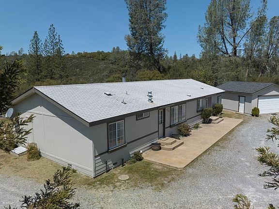 Nestled on a hilltop with beautiful mountain views, this clean and well-maintained 3 bedroom, 2 bath manufactured home offers the ultimate in peaceful living. The 1,783 square foot home is nicely situated on 20 serene acres adjacent to O'Neil Creek just outside the small town of Sheep Ranch. The open floorplan features a spacious living room and dining room with vaulted ceilings and large windows that fill the space with natural light and offer views of the surrounding landscape. The kitchen area offers a functional layout with good counter space, a breakfast nook and ample storage with a large pantry and plenty of cabinets. The primary bedroom, with ensuite bathroom, is located on one side of the house, while the second full bathroom and 2 additional bedrooms are on other. Also, this home has central heat and air plus a wood stove that you can cozy up to on those chilly winter nights. Outside you'll find a covered patio perfect for entertaining your guests while watching sunsets and everything else that nature has to offer. The yard creates the ideal blank canvas for those with a green thumb and the detached garage provides space for all of your toys. Plant a garden, grow grapes, build the ultimate shop - the possibilities are endless. This secluded property offers privacy and natural beauty and yet is only 10 miles from the lovely town of Murphys where you can enjoy wineries, restaurants and shopping. Call your agent to schedule a tour today.