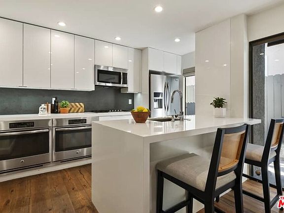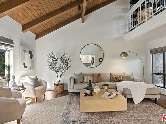 This is the home you've been looking for! Prime Santa Monica townhome with an open floor plan, vaulted beamed ceilings and ideal for entertaining. Beautifully updated chef's kitchen with stainless steel appliances, wine fridge, modern aesthetic and plentiful storage. Open dining area with access to your very own private patio for rest and relaxation. Upstairs includes an incredibly spacious bedroom with two closets, full bath and access to hallway laundry. A few stairs up is the 2nd spacious bedroom also with en-suite bath, plentiful closet space and natural light. Finally, enjoy a beautiful lofted home office/bonus area overlooking the character filled living room. The only unit in the complex with a private 2 car garage, this home truly has it all! Close to cafes, parks, the Montana shopping area and the Santa Monica beach.