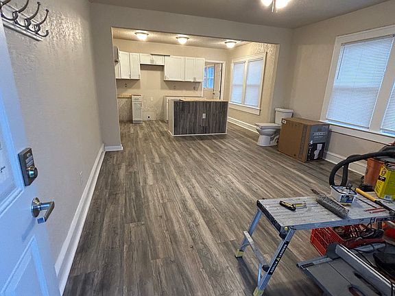 Fully renovated 3 bedroom, 2 bathroom single story house. House is 90% completed. Open floor plan!! Granite and backsplash to be installed. Stainless steel appliances consisting of refrigerator, stove and microwave. Master bedroom has its own full bathroom with his & her vanities, a step-in shower, and a large closet. Other full bathroom doubles as the laundry room, and can accommodate a stackable washer/dryer. All new electrical, plumbing, laminate flooring through, and kitchen with sink in the island. Off street parking with a driveway long enough to park 3 vehicles, and a detached garage.
