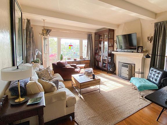 Upper floor 2 bedroom 2 bath in a gorgeous Spanish Style Fourplex. Balcony. Great street surrounded by the most gorgeous 4plexes and duplexes in the Miracle Mile area. Unit is nearly 1250 sq ft of space. bright, tons of French windows, hardwood floors, Open kitchen, vintage bathrooms. One parking off street. Option to rent garage for storage. Tenant moving out June 15. Can show with an advance notice. Ready to move in by June 23, 2022. Cat is fine or a small dog with 25 LB weight limit. Owner pays for water, gardener and pest control monthly service. Tenant pays for electrical, gas and trash. Small dog up to 25 lb. Cat is fine.