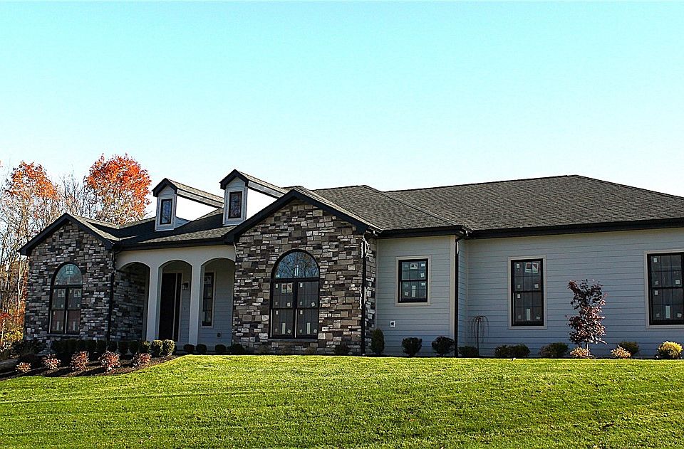 This stunning new KACIN Homes ranch in Hillstone Village offers exceptional one-level living with 3 bedrooms, 2.5 baths, an office/den, laundry room, and a spacious 3-car garage. Featuring 10' ceilings and 8' doors, the open layout seamlessly connects the eat-in kitchen, dining area, and great room. The kitchen includes Manor House cabinetry, granite countertops, and stainless steel appliances. The luxurious primary suite boasts a walk-in closet, quartz double vanity, stand-alone soaking tub, and tiled shower. The office/den can also serve as a fourth bedroom. Don’t miss your chance to call Hillstone Village home! (This home is currently under construction with interior and exterior finishes being completed.)