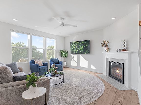 Amazing quiet location backing to woods & Ivanhoe Golf Course. Interior choices absolute perfection top of the line upgrades & finishes throughout. Builder delivered June 2025 Seller transferred Sept. Buyer benefits from beautifully finished home, with seller's hard work, exquisite choices & quick availability. Stately curb appeal with brick front, fenced backyard. Light, bright open floorplan, decorator upgraded flooring & designer fixtures throughout. Foyer boasts upgraded staircase with iron spindles, private 1st floor Office, Great room with custom fireplace. Gourmet kitchen with 42" cabinets w/additional features pull out shelves, decorator faucets, hardware and pulls, etc. Quartz counters & island, stainless steel appliances, built in oven, microwave, gas cooktop and hood. Kitchen open to dining room and Sunroom addition, convenient 1st floor mudroom/informal office. Primary suite with amazing customized tray ceiling, luxury primary bath, dual sinks & quartz counter with separate tub & shower, walk in closet with Closets by Design custom built ins. 2nd floor also boasts large loft/4th bedroom or family room, full hall bath upgraded with dual sinks and full tub/shower with designer faucets & tile surround. Bedroom 2 & 3 with large closets & recessed lighting. Walk out basement with roughed in plumbing for 3rd full bath & sliders to beautiful private fenced plush yard. Custom solar blinds (by Graber) From gorgeous top of the line flooring to decorator hardware and cabinet pulls to designer & recessed lighting throughout.Extensive additions & upgrades too many to list. Builder warranty transfers to new owners. Sheldon Woods finest location & one of the largest lots in the subdivision.