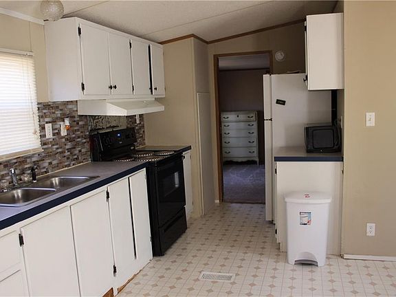 Cute and clean 3-2 single-wide on a .786 acre lot. Fresh carpet. Some updates to kitchen. 3 window units for air. Has duct work and vents for central HVAC but needs new outside unit and repairs to inside. Refrigerator stays.