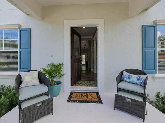 TOTALLY AWESOME-UPGRADED. This one has it all! Coastal grey, laminate wood flooring & brand new glass inlay front door lead to an office (or 4th bedrm w/o closet) & formal dining. Gourmet kitchen with soft-close, shaker style white cabinetry, SS contempo hood, tile backsplash, granite peninsula+pendant lighting. Great room is perfect for entertaining with built-ins which flank the stacked stone wall with a 50'' linear, gas frplc. Owner suite is downstairs with slate tile flooring & frameless shower, separate vanities. Upstairs has 2 beds+full bath. Enjoy the private, fenced lot with exceptional landscaping, paver patio with seating area & fire pit. New exterior paint & termite bond. A-rated schools, close to shopping, dining, golf & I95. Amazing amenities & clubhouse