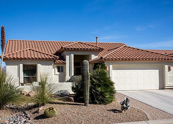 Premium Quail Creek location!! Beautiful 2 Bedroom, 2 Bath plus Den home that borders the Santa Rita Experimental Range with Panoramic Views of the Mountains and LOTS of PRIVACY! FRESHLY Painted exterior. Open Floor concept with the Kitchen, Eating Area & Great Room open to each other. Tile in all the living areas & carpet in the bedrooms. The Kitchen has Beautiful Granite counters, 36'' Maple Cabinets with Crown Molding, Stainless Steel Induction Oven & an easy-flow work space. The Great Room has a Built-in, lighted Media/Display Center & an electric fireplace. The Master Closet has Built-ins. 4 Ft. Extended Garage has Storage Cabinets that convey with the house. Most furnishings available with a SBOS. View this house and make it your home!