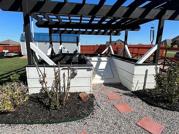 - Exterior features: Fire Pit, Rain Gutters, Water Feature
