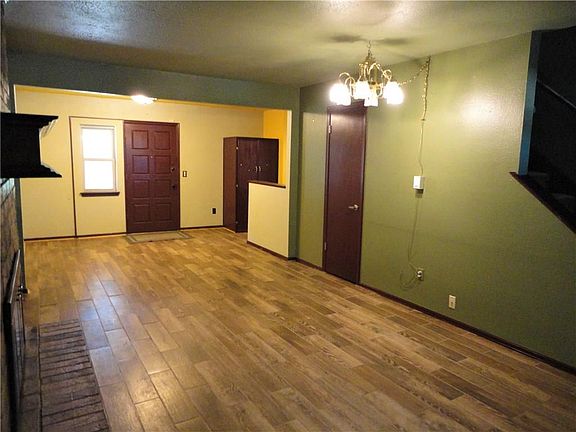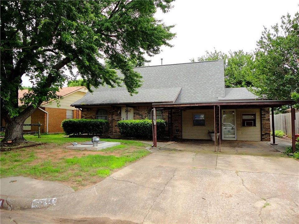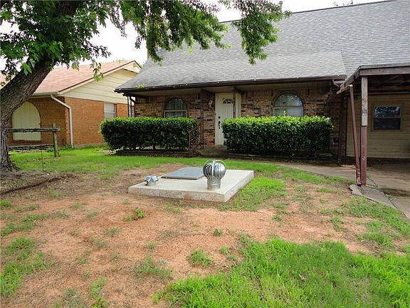 Spacious traditional two level home in Moore with one bed and full bath on lower level, three good-sized bedrooms and a full bath on the upper level. Several updates including wood look ceramic tile in the entry, living, and dining. Roof approx. 2011, exterior vinyl siding, dual pane vinyl tilt-in windows throughout except front curved windows (storm windows added there). Air unit updated approx 2012. Garage is converted to 4 smaller rooms. Workshop area not in heated space. Could be converted back to garage if needed. This is an process of Short Sale, and to be sold as-is. Dishwasher and stove had been removed from the property therefore cannot go FHA or VA.