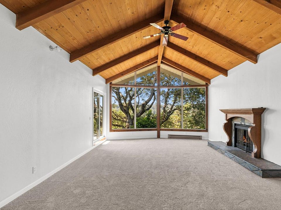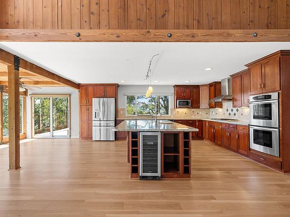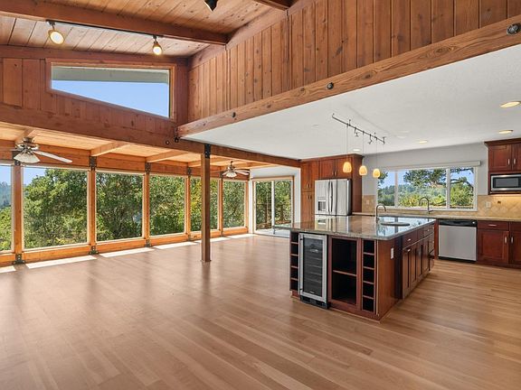 Hilltop Haven in Beautiful Pleasant Valley. Welcome to your dream home perched atop a scenic hill in the heart of Pleasant Valley! This peaceful and private retreat offers 2,949 SF of thoughtfully designed living space on an expansive 1.36-acre lot (59,416 SF). Inside, you'll find 4 spacious BRs PLUS an office & 3 full BAs perfect for comfortable family living or hosting guests. The updated kitchen is a chefs dream, featuring granite countertops, an oversized island with a sink, built-in oven range, and a wine refrigerator. The open-concept dining area flows seamlessly into the cozy family room, where open beam and vaulted ceilings add character and charm, centered around a welcoming FP. Primary suite offers a serene escape, complete with a generous walk-in closet and beautiful views. Step outside onto one of three expansive decks to soak in panoramic views of the surrounding trees and valley ideal for relaxing in the hot tub, grilling with friends, or simply enjoying nature. Additional highlights include: large, flat outdoor area, Fenced garden & chicken coop, Ample space for RV/boat parking, & Extra guest parking for entertaining, Every window frames a picture-perfect view, making this hilltop home a true sanctuary. Included with home is a full house Generac generator.