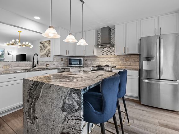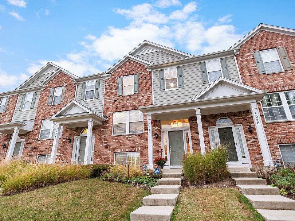 Discover the perfect balance of style, comfort, and convenience in this beautifully updated townhome, ideally situated in The Reserve at Elgin with peaceful views of the surrounding nature area and pond. Bathed in natural light, the open-concept living and dining area showcases coveted southern exposure, engineered hardwood flooring, and plenty of space for both relaxation and dining. The showstopping kitchen serves as the heart of the home, featuring 42" white cabinetry with elegant gold hardware, luxurious granite countertops with a waterfall island, and generous space for cooking and entertaining. Enjoy the ease of main-level laundry and a private balcony overlooking the tranquil landscape. Upstairs, the expansive primary suite impresses with a vaulted ceiling, oversized walk-in closet, and a spa-inspired bath complete with a large modern vanity and walk-in shower. Two additional spacious bedrooms share a beautifully updated bath with a sleek stand-up shower. The versatile lower level is ideal for a family room, home office, or fitness space. Recent updates include a new AC unit in 2024, a 2023 water heater, 2022 washer, dryer, and dishwasher, plus an ADT security system for added peace of mind. 2 car attached garage. Perfectly located just minutes from shopping, dining, expressways, and scenic nature trails. HOA $240/month.