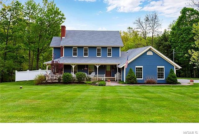 Beautiful custom built colonial w/wrap around porch sitting pretty on 5 park like acres w/trails thru wooded area. Porch leads to welcoming spacious foyer, crown molding! LR boast of floor to ceiling windows, fireplace with antique mantel, DR has bay window, French double doors leading to wrap around porch. Entertain w/ease in your gourmet kitchen w/custom features including tiled backsplash,granite and oak cabinetry, energy star appliances, eating area with new sliders leading to huge tiered deck. Generously sized familyrm w/vaulted ceilings, new skylites, hugh palladium window and wood stove. Master bedroom and bath, 3 other bedrooms, walk-up attic, second walk up-attic in garage. Hardwood flooring and solid wood doors thru-out 1st floor. Full walk out basement. New roof (2016), windows in family room, hot water heater and 3 baths updated within 5 yrs. Convenient to 17 for all shopping, school, etc