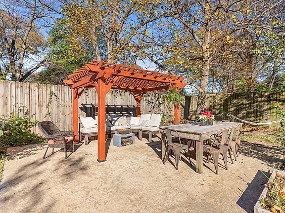 The charm continues as you enter the backyard garden. The pergola surrounded by roses is waiting for a new owner to cozy up with a good book by the fire-pit or host a football watch party. The garden has a wide variety of flowers, including hydrangeas, Shasta daisies, phlox, Russian sage, coneflowers, catmint sage, butterfly bush, and aster. Four planter boxes await spring seeds to grow your own bouquets. Included with the sale of this home is a seat to attend the neighborhood floral shop Midtown Bramble's flower academy. An additional concrete patio provides more space for grilling or lounging. The storage continues with a spacious outdoor storage closet.